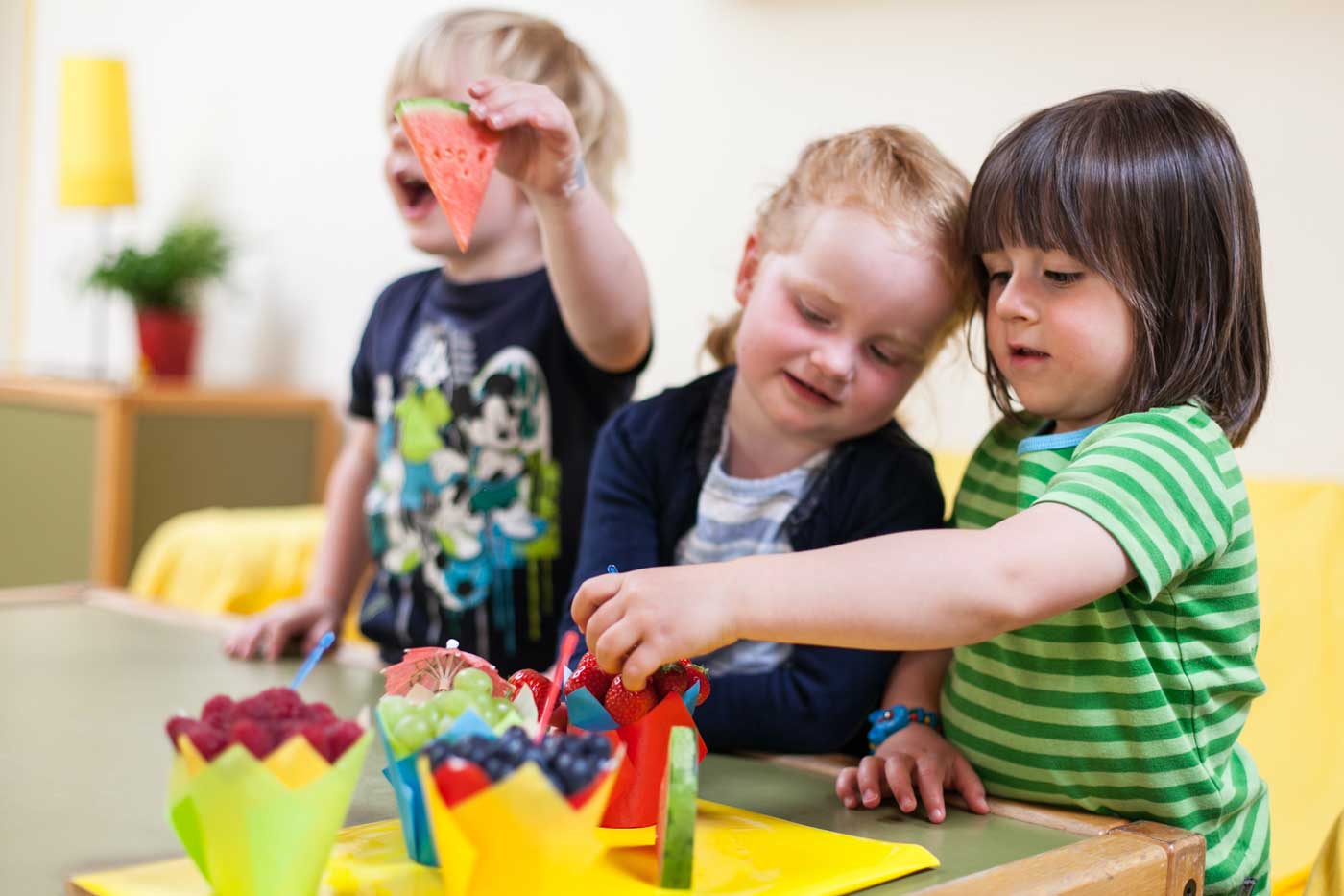 Über Obst und Gemüse freuen sich die Kinder immer: In den Gruppen stehen Sammelkörbe, die gerne für einen gesunden Snack gefüllt werden dürfen.